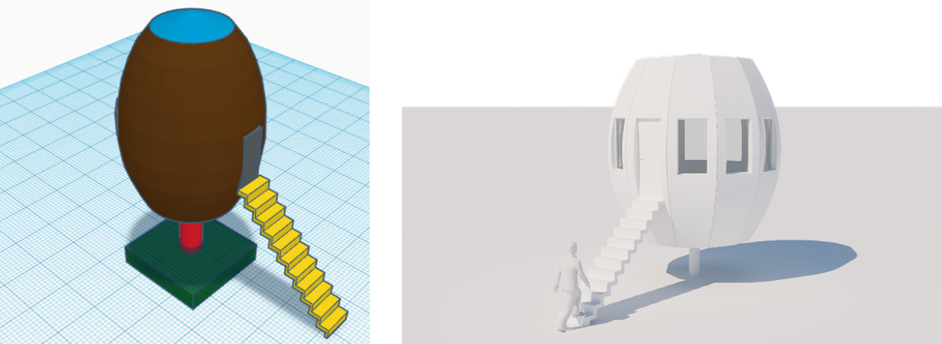Konstruktsioon osutus aga püstitamise mõttes liialt aeganõudvaks ja seetõttu tekkis vajadus seda lihtsustada, kuid samal ajal oli soov säilitada ehitise ümarat vormi kuna see sobitub looduses väga paljudesse erinevatesse keskondadesse. Esialgsed visandid olid paljulubavad ja lõpliku valiku inspiratsiooniks sai juba puitehitiste seas äraproovitud palkmaja seinakonstruktsioon, mida muutsime oluliselt lihtsamaks ja uuenduslikumaks. Tulemuseks oli seinakonstruktsioon, mille puhul on võimalik seinamassiivi kasvatada nii horisontaalselt kui ka vertikaalselt mööda kaarjaid jooni.